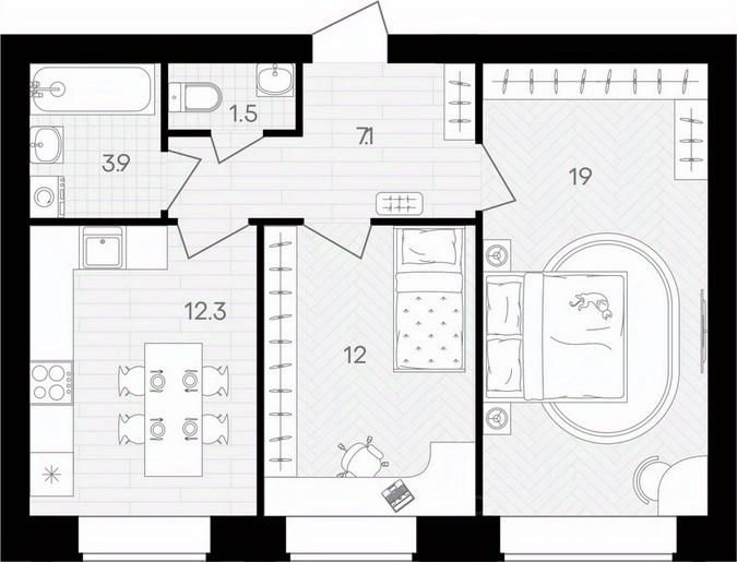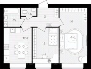 Площадь кухни12,3 м²