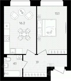 Жилая площадь15,1 м²