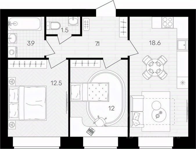 Площадь кухни18,6 м²