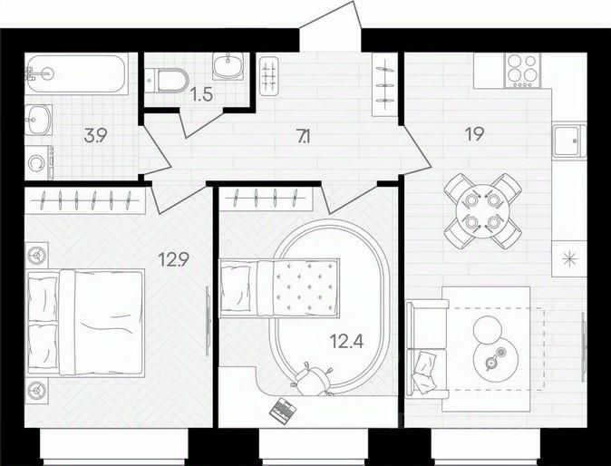 Площадь кухни19 м²