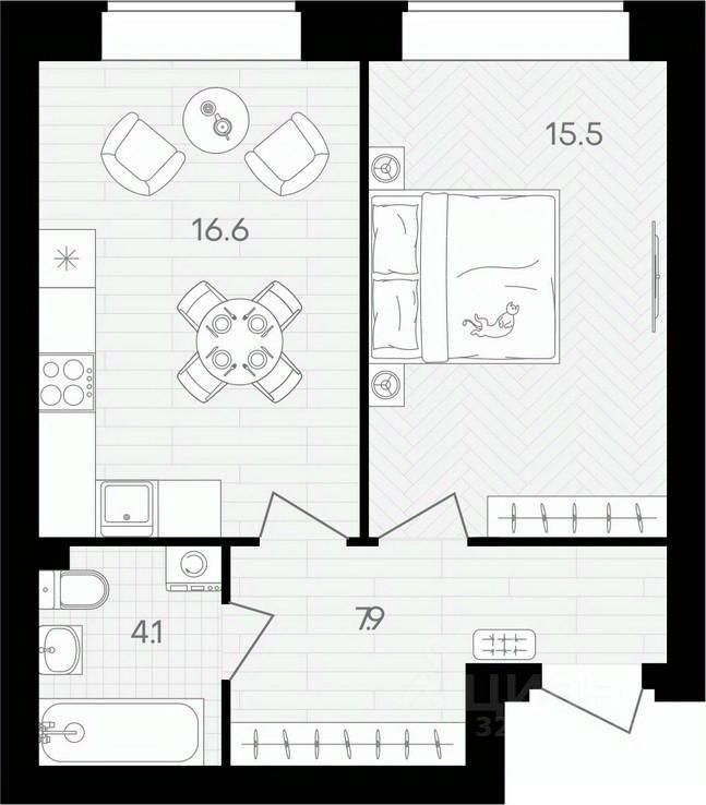 Жилая площадь15,5 м²