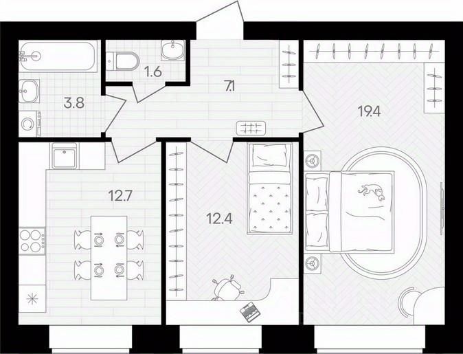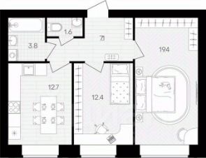 Площадь кухни12,7 м²