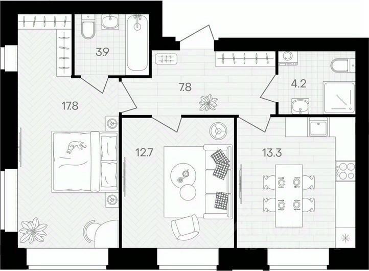Общая площадь59,7 м²