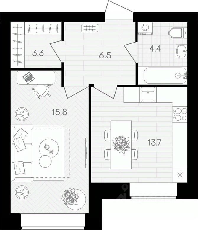 Жилая площадь15,8 м²