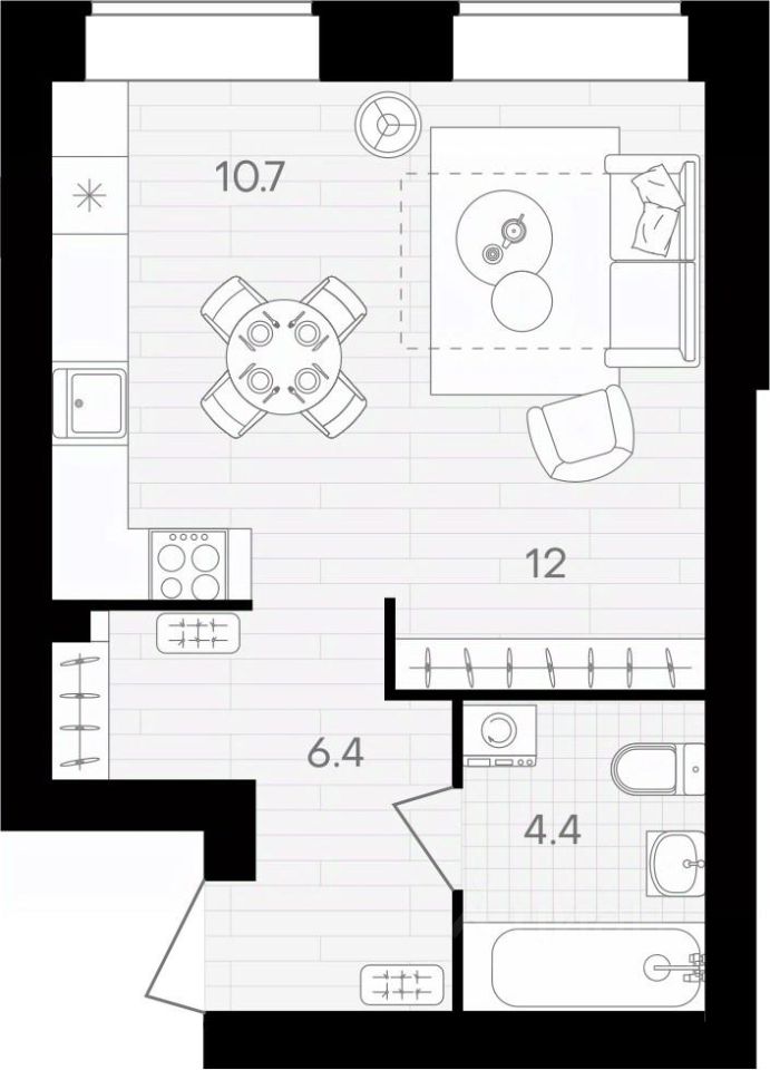 Площадь кухни10,7 м²