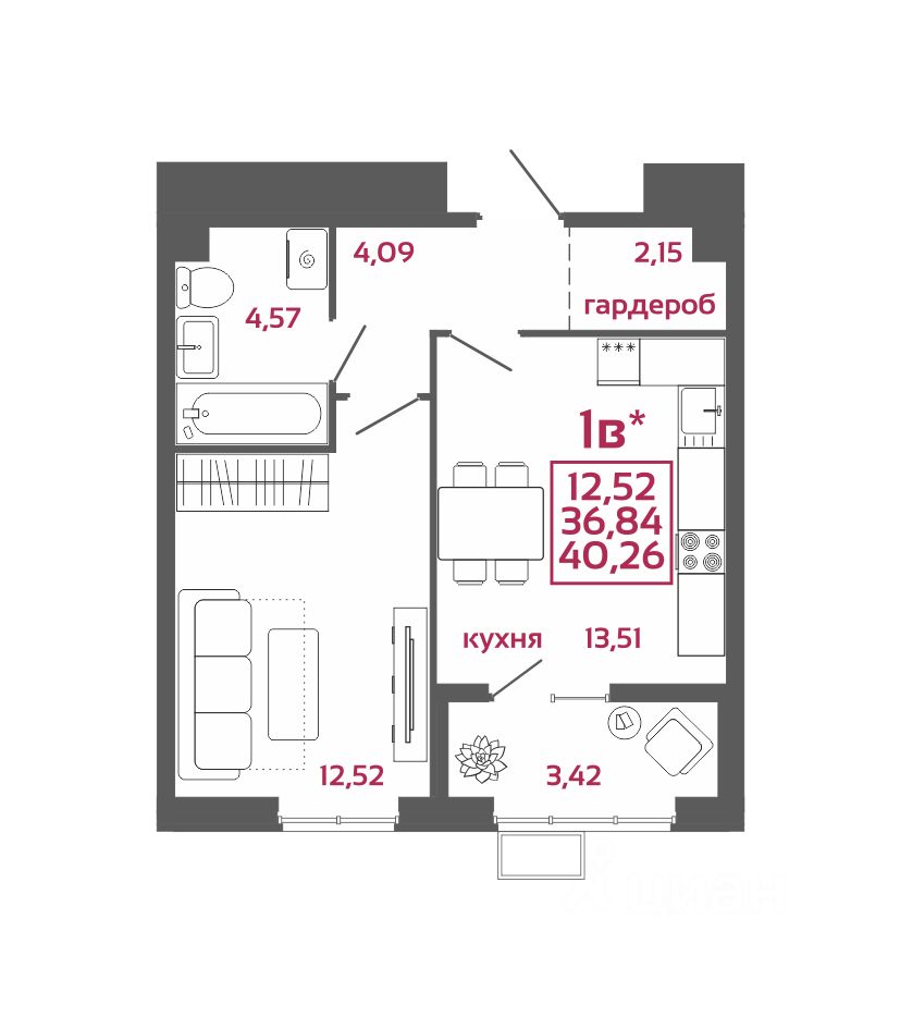 Общая площадь40,26 м²