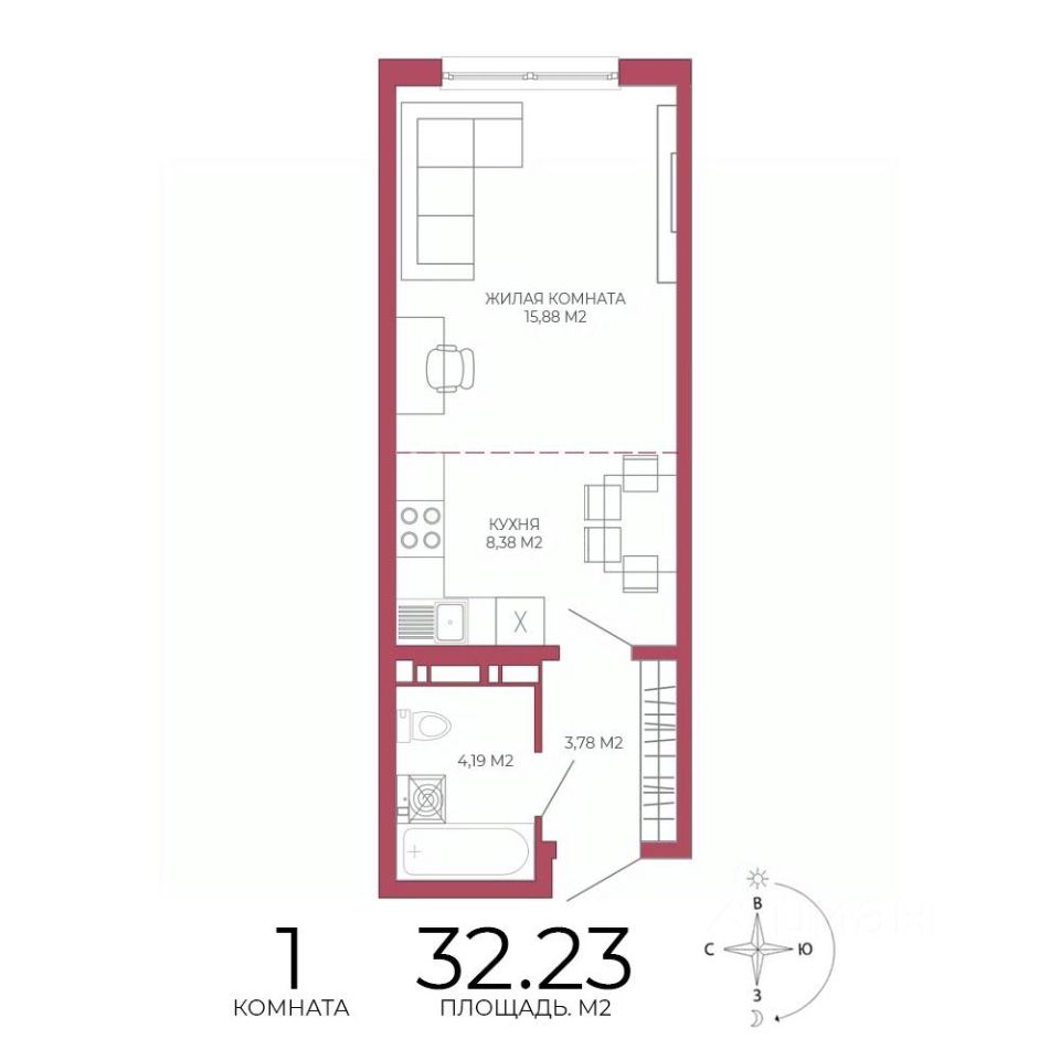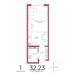 Продаётся 1-комнатная квартира в строящемся доме (Побочинская,60), срок сдачи: IV-кв. 2027, общей площадью 32.23 кв.м., на 6 этаже. Дизайнерская отделка.