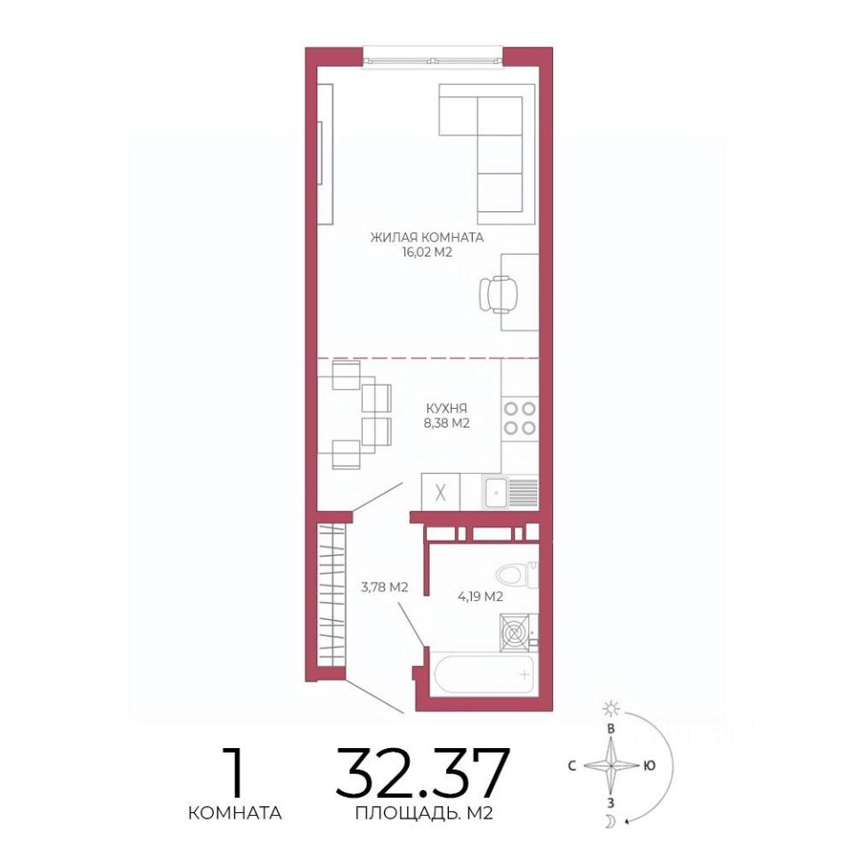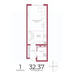 Продаётся 1-комнатная квартира в строящемся доме (Побочинская,60), срок сдачи: IV-кв. 2027, общей площадью 32.37 кв.м., на 9 этаже. Дизайнерская отделка.