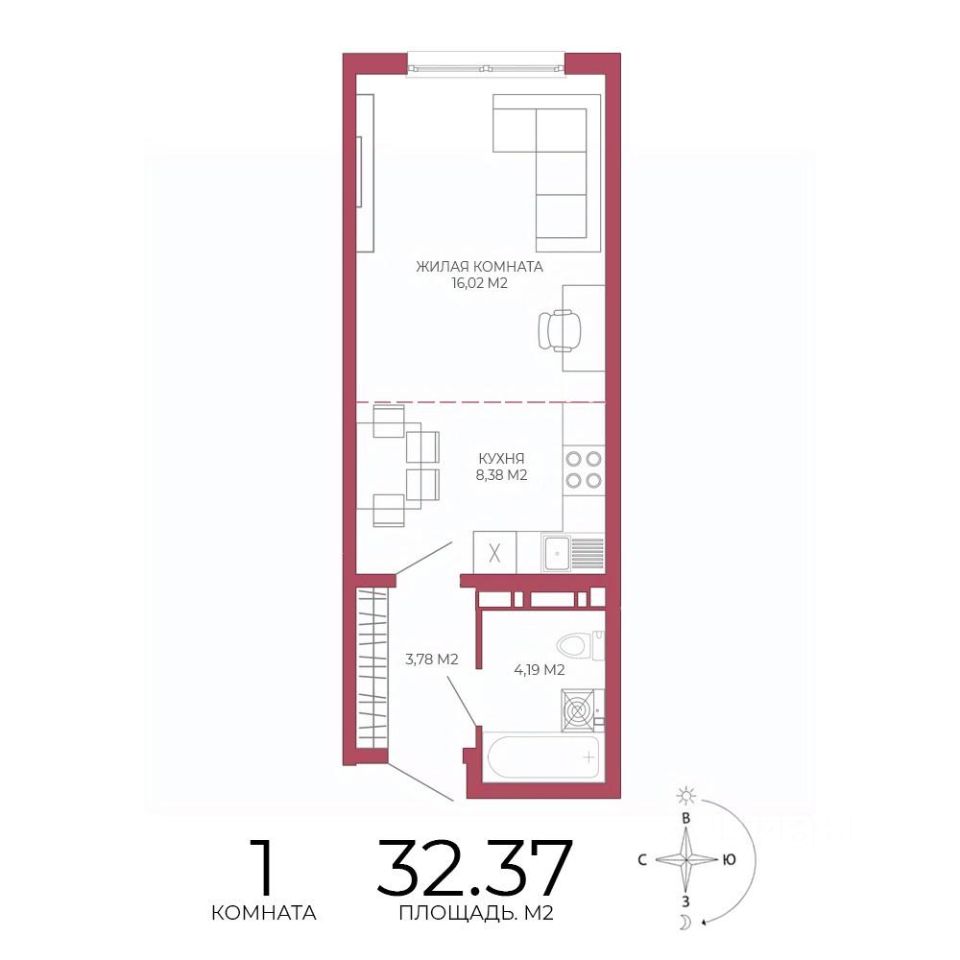 Продаётся 1-комнатная квартира в строящемся доме (Побочинская,60), срок сдачи: IV-кв. 2027, общей площадью 32.37 кв.м., на 10 этаже. Дизайнерская отделка.