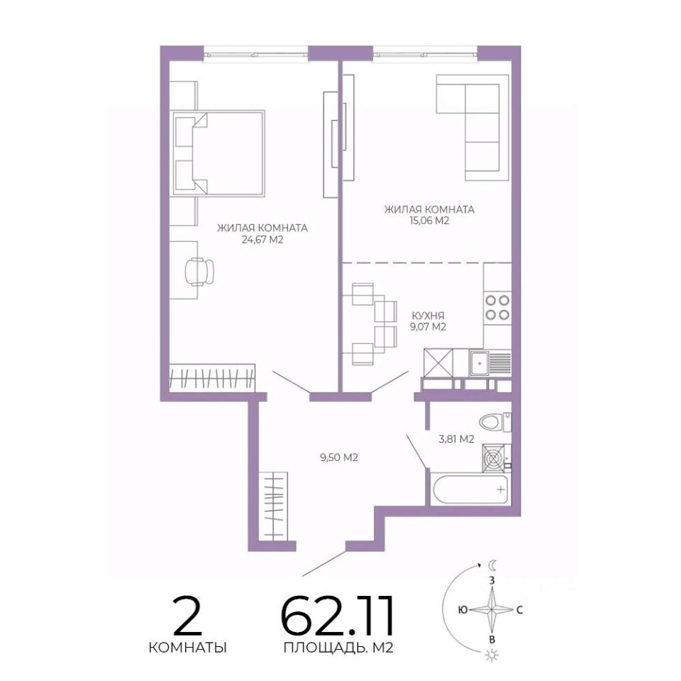 Продаётся 2-комнатная квартира в строящемся доме (2 этап (2 строение)), срок сдачи: III-кв. 2028, общей площадью 62.11 кв.м., на 3 этаже. Новый жилой комплекс "Чаадаев" от застройщика "Территория Жизни" расположен по адресу Россия, Пенза, улица Чаадаева, 60Б/2.