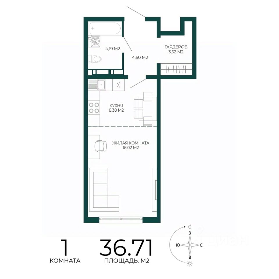Продаётся 1-комнатная квартира в строящемся доме (2 этап (1 строение)), срок сдачи: III-кв. 2027, общей площадью 36.71 кв.м., на 7 этаже. Новый жилой комплекс "Чаадаев" от застройщика "Территория Жизни" расположен по адресу Россия, Пенза, улица Чаадаева, 60Б/2.
