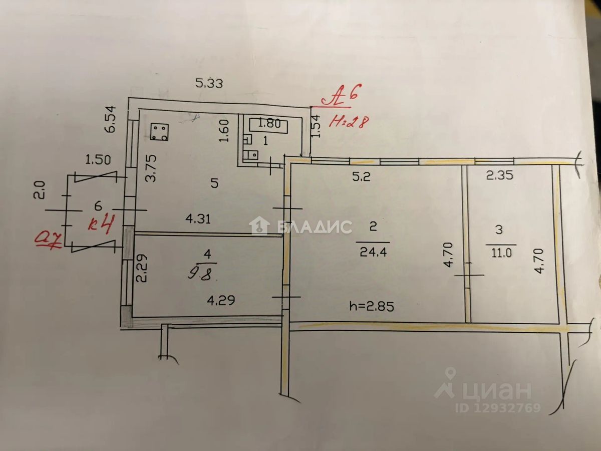Высота потолков в доме 2,85 метра.