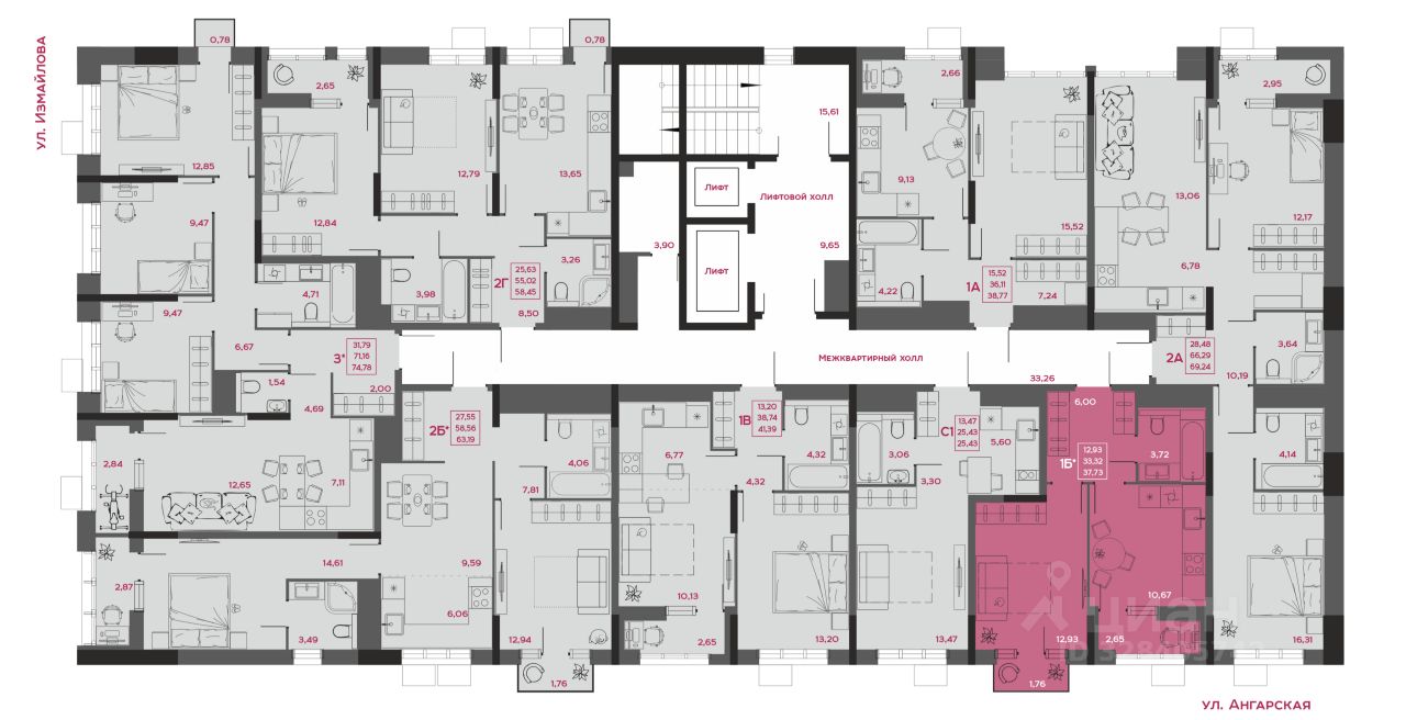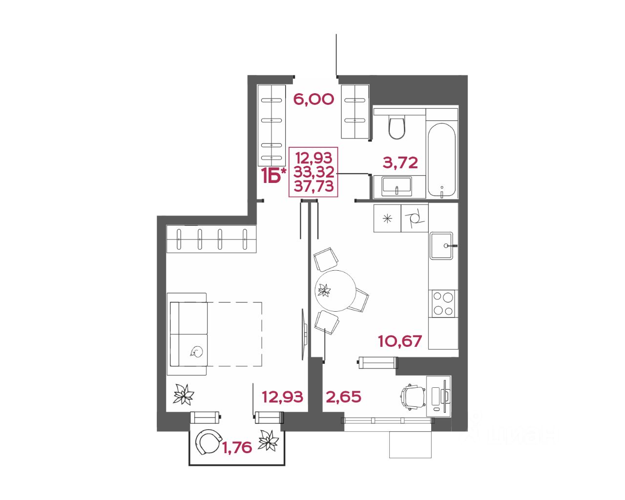 Общая площадь37,73 м²