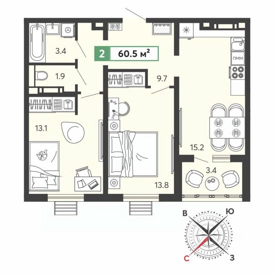 Продаётся 2-комнатная квартира в строящемся доме (11 очередь), срок сдачи: III-кв. 2028, общей площадью 61 кв.м., на 12 этаже. Жилой комплекс "Город Спутник" представляет собой комплексную застройку.