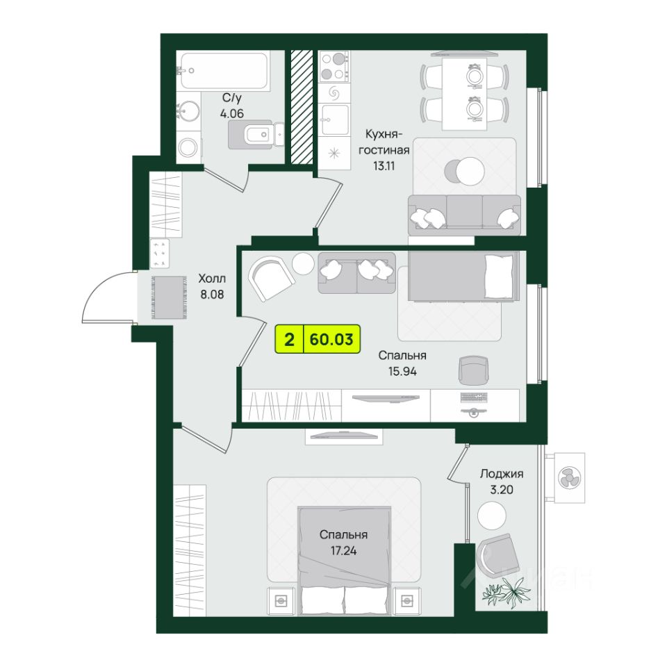 Общая площадь60,03 м²