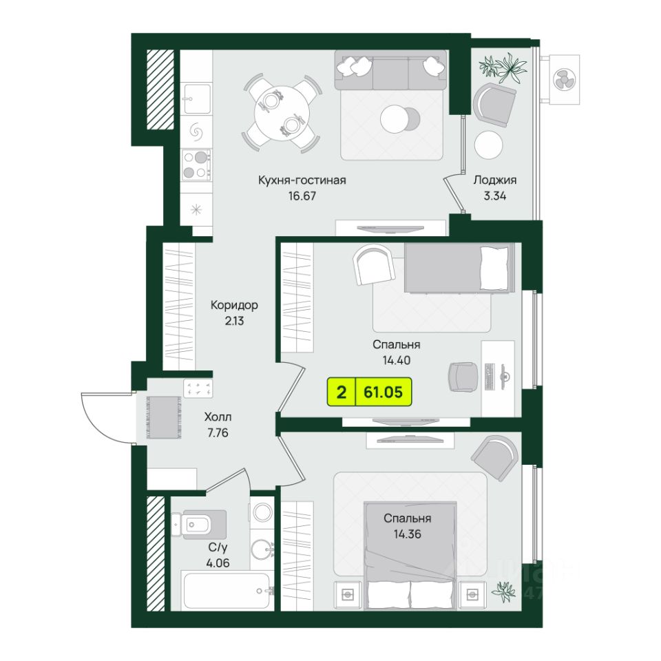 Старт продаж в Жилом квартале "Притяжение"! Семейная ипотека 6%. Надежный застройщик "РКС Девелопмент" с 19-летним опытом. Просторная 2-комнатная квартира создана для счастливой жизни: • две отдельные спальни (14.36 м² и 14.40 м²) • просторная кухня-гостиная (16.67 м²) для душевных встреч • комфортный санузел (4.06 м²), оборудованный качественной сантехникой • дизайнерская отделка под ключ: ламинат, обои, натяжные потолки с потолочными светильниками • панорамное остекление лоджии (3.34 м²). Вдохновляясь энергией современного города, мы создали "Притяжение" — жилой квартал, где жизнь не замедляется, а приобретает новые смыслы. Здесь утро начинается с пробежки по пешеходному бульвару, день — с работы в коворкинге, а вечер — с встреч в кафе на первом этаже. После насыщенного дня возвращайтесь в пространство, где каждая деталь работает на ваш комфорт. Способы покупки: • Семейная ипотека под 6%. • Рассрочка 0% без участия банка. • Принимаем маткапитал и военные сертификаты. • Полное бесплатное сопровождение сделки. • Скидки участникам СВО. Не упустите возможность — начните новую жизнь, где вы центр притяжения! Цены на старте продаж — самые выгодные! Финансирование строительства осуществляет АО "Банк ДОМ.РФ".