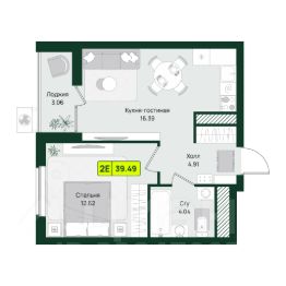 Общая площадь39,49 м²