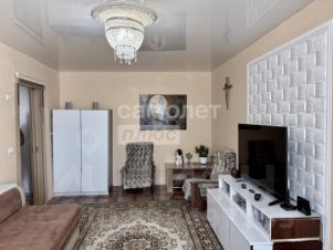 ОПИСАНИЕ: Квартира светлая и очень тёплая. Установлена входная металлическая дверь. Пласт.окна. Натяжные потолки. Стены выровнены поклеены обоями. Полы стяжка линолеум. Сан узел совмещённый. Установлены счетчики горячей и холодной воды.