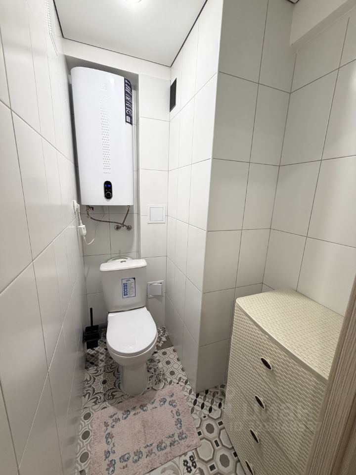 — В ванной и туалете — современный кафель + керамогранит на полу.