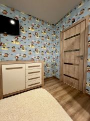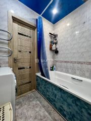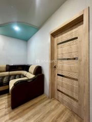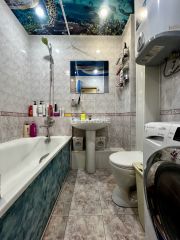 Входная металлическая дверь, установлены межкомнатные двери, пластиковое остекление окон и лоджий, натяжные потолки с точечным освещением,напольное покрытие ламинат+ плитка.
