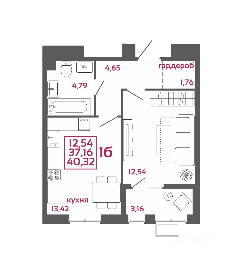 Общая площадь40,32 м²