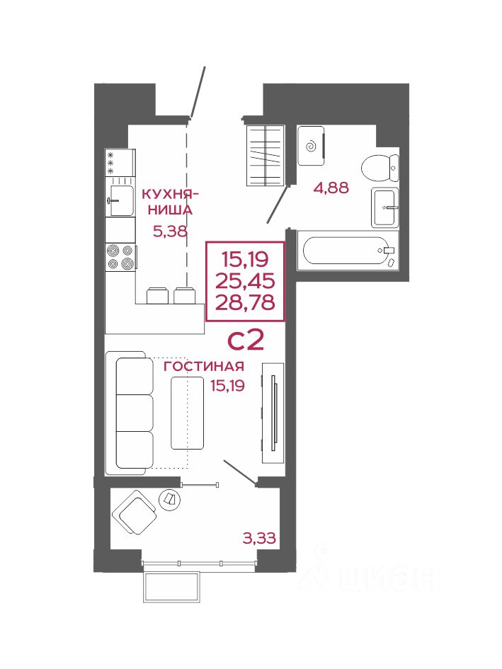 Общая площадь28,78 м²