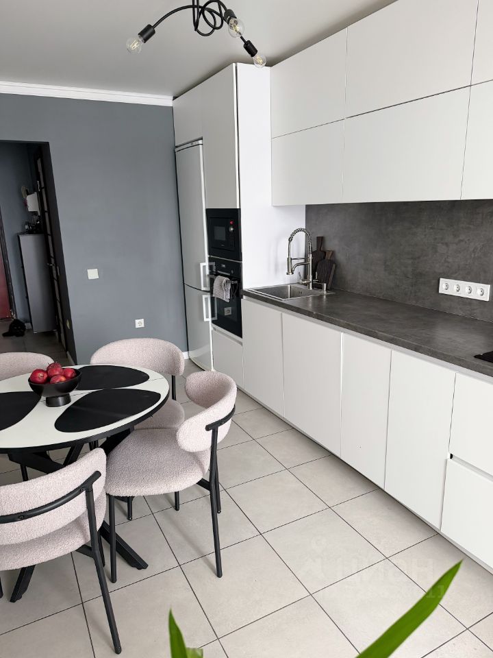 Остается вся мебель: современный кухонный гарнитур, столовая группа с раскладным столом, мягкая мебель, гостиный гарнитур, прихожая.