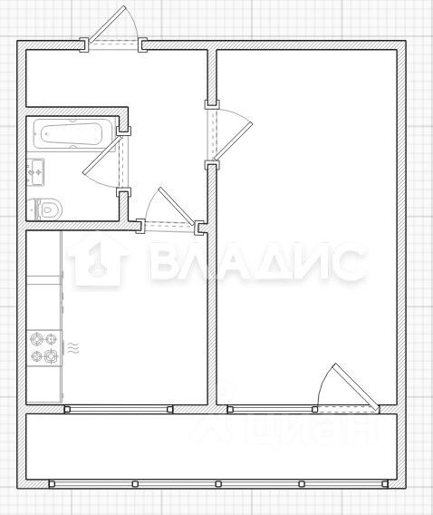 Общая площадь 35,9 кв. м, из которых 18,7 кв. м — жилая площадь, 7,6 кв. м — кухня. Высота потолков — 2,5 м, что создаёт ощущение простора и свободы.