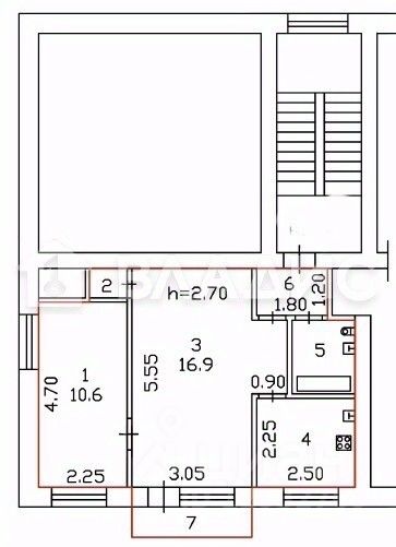 Жилая площадь - 27,5 кв. м. (16,9 и 10,6)