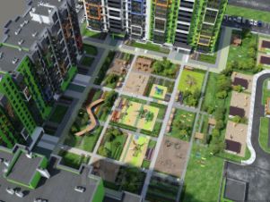 Большая спортивная зона. В квартале будет организована большая огороженная спортивная зона с площадками различных направлений (футбол, баскетбол, волейбол).