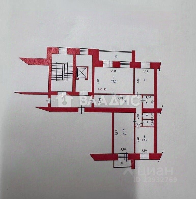 Жилая площадь: 53,9 кв.м. (12,5 кв.м +18,2 кв.м +22,5 кв.м.)