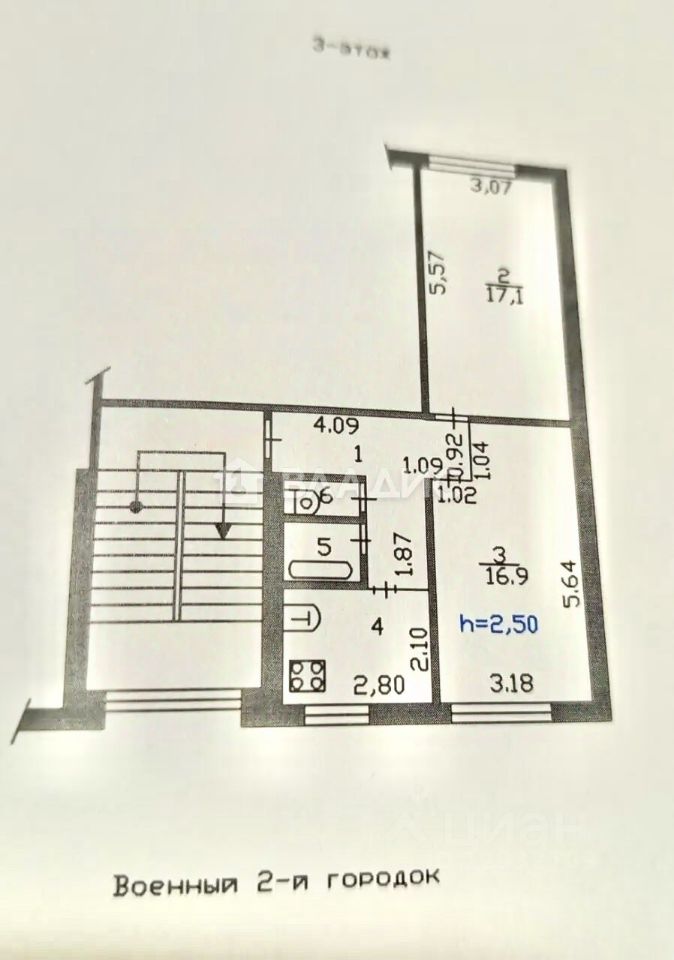 Квартира находится на 3 этаже 5-этажного панельного дома.