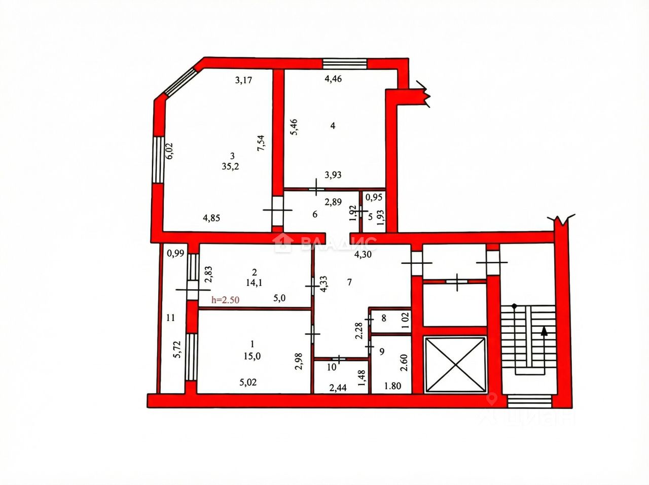 Общая площадь квартиры составляет 118,2 кв.м.