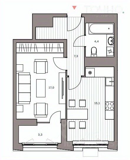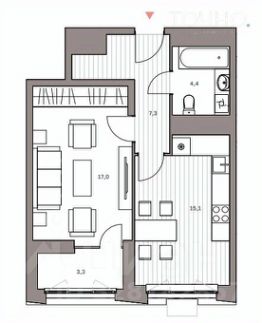 Жилая площадь: 17 кв.м.