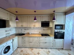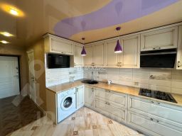 Квартира полностью оснащена мебелью и техникой, которые могут перейти новому собственнику по договоренности. В кухне установлена встроенная техника - газовая плита, духовой шкаф, холодильник, вытяжка, стиральная машинка.