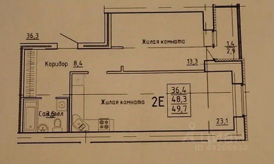 Общая площадь квартиры 49,7 кв.м. (по выписке), плюс лоджия 2,9 кв.м.