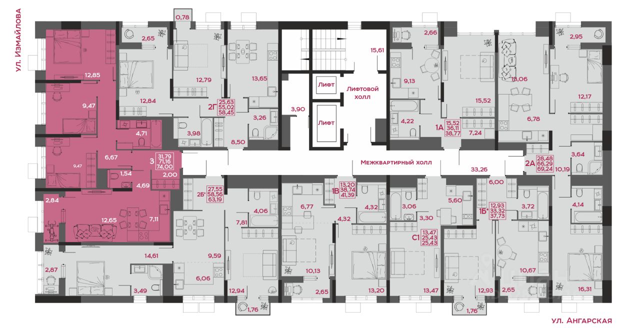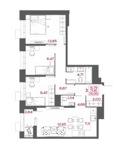 Общая площадь74 м²