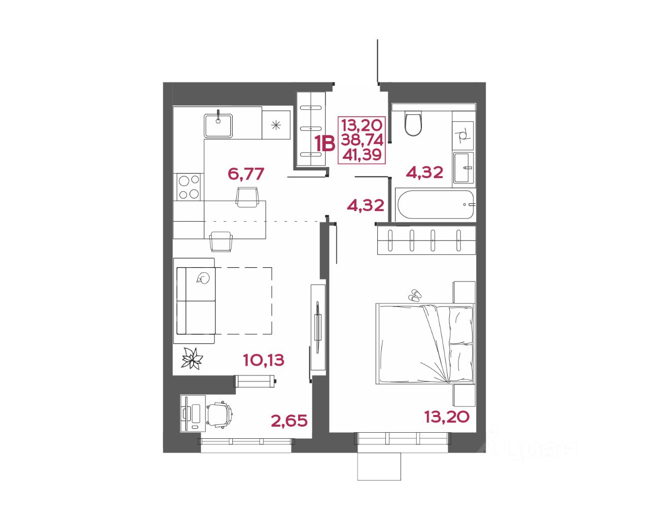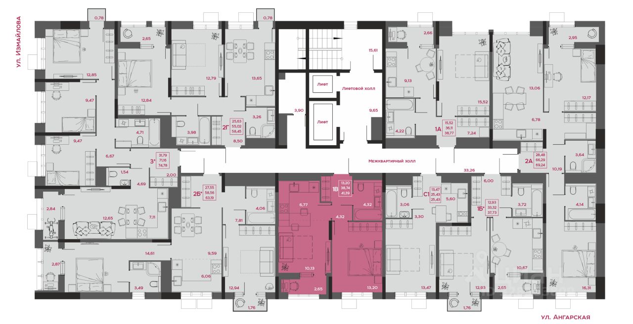 - коллекция квартир от 24,48 до 129,82 м²