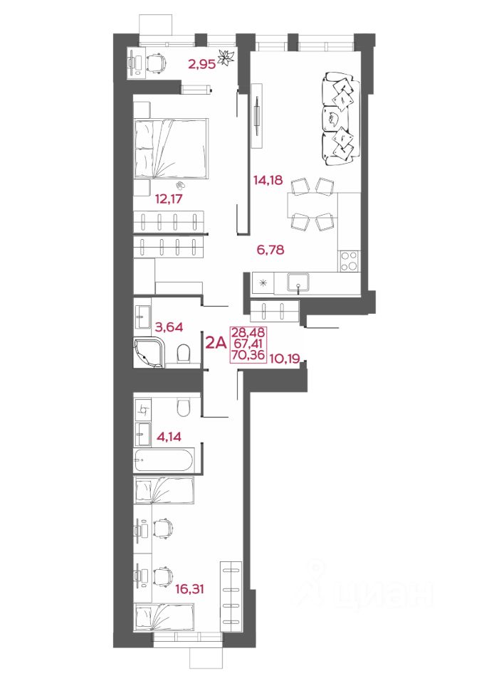 Общая площадь70,36 м²