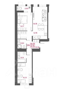 Продается 2-комн. квартира, 70,36 м²