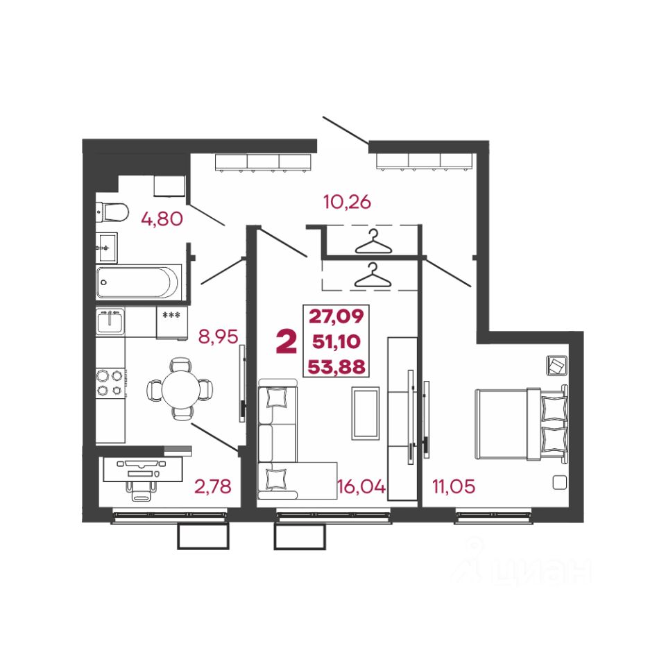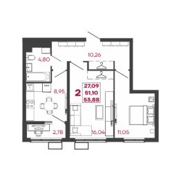 Общая площадь53,88 м²