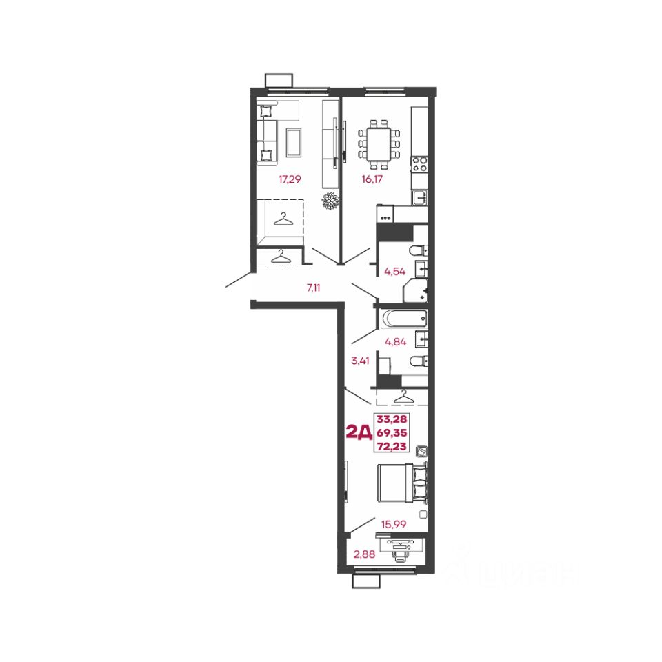 Общая площадь72,23 м²