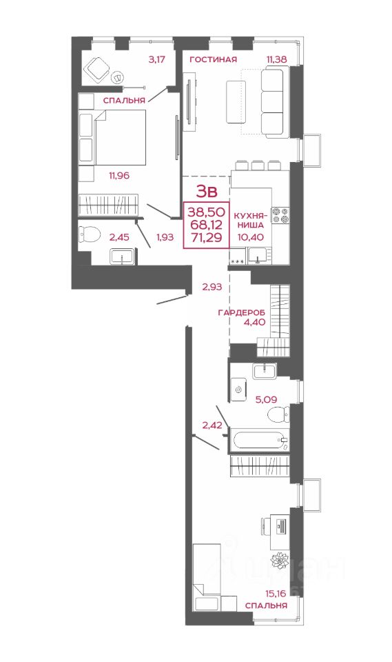 Общая площадь71,29 м²