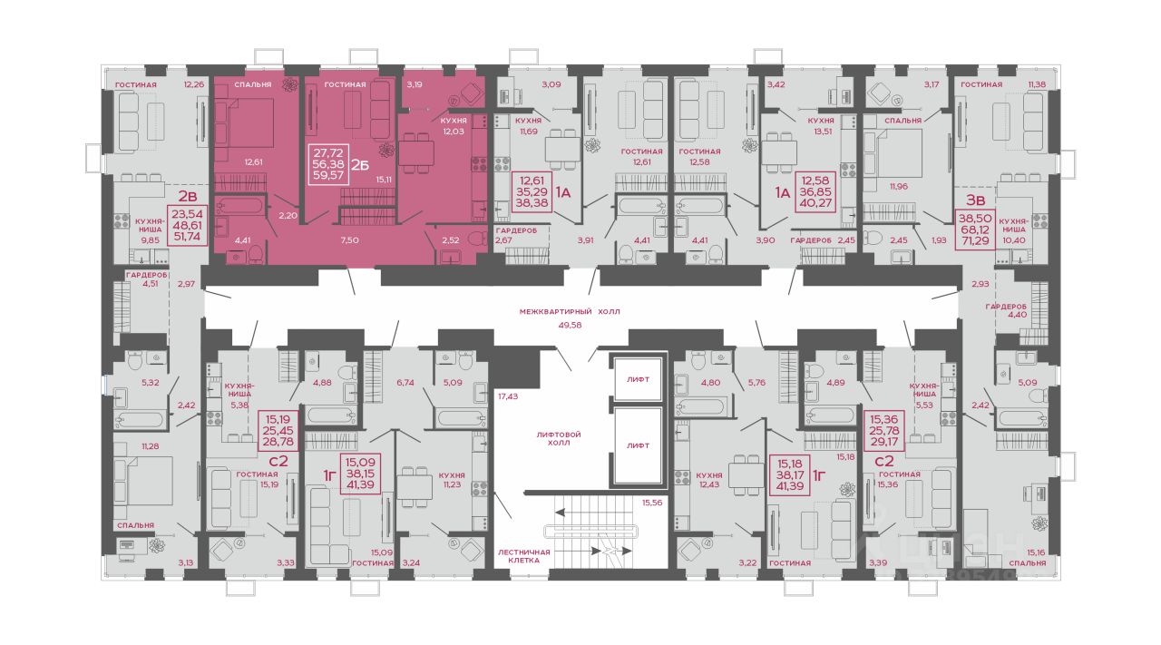 Общая площадь59,57 м²