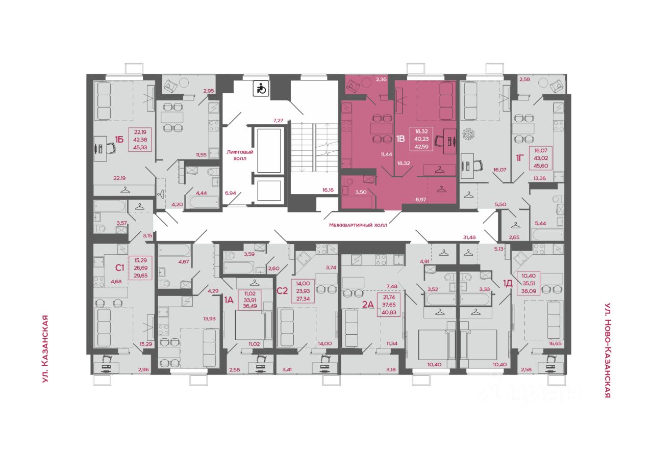 Общая площадь42,59 м²