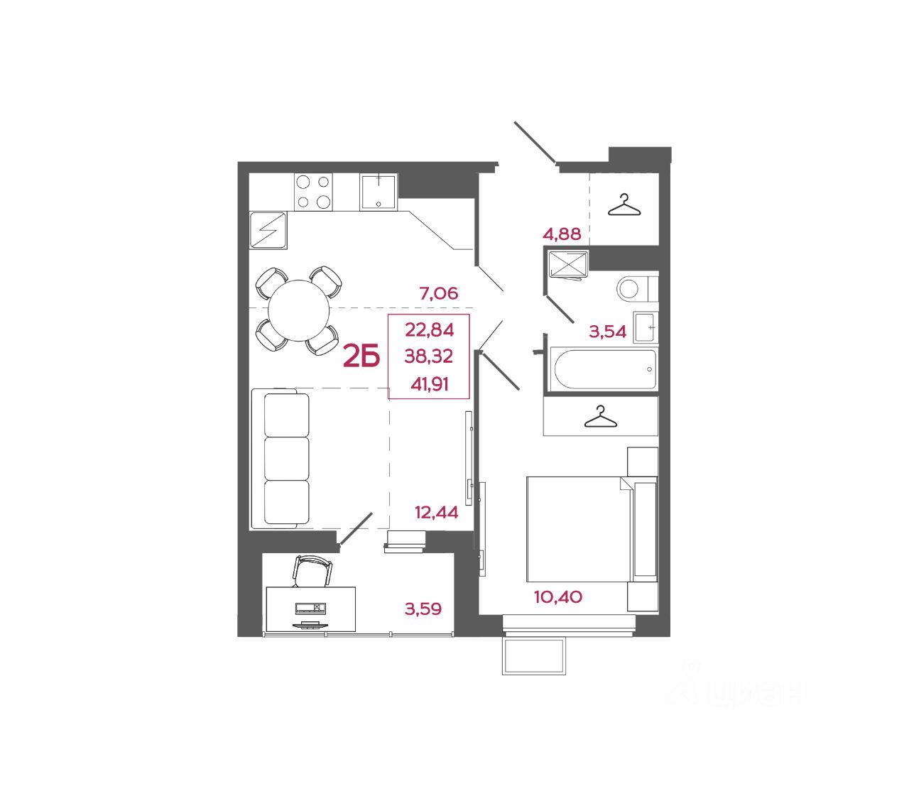 Общая площадь41,91 м²