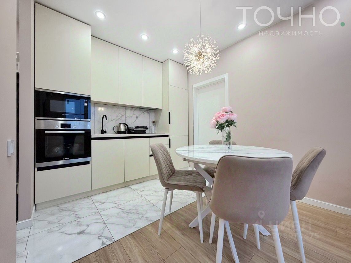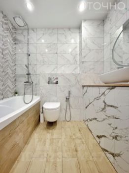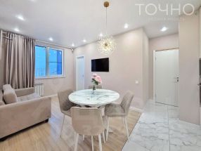 В квартире выполнен дизайнерский ремонт в теплой цветовой гамме.