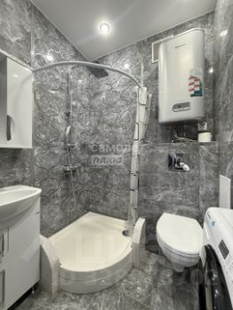 В квартире выполнен евроремонт. Установлены пласт окна, натяжной потолок, ванная в кафеле современного образца, на полу на кухне и коридоре плитка, в комнате ламинат, стены выровнены, лоджия застеклена.