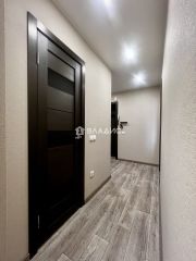Входная металлическая дверь, установлены межкомнатные двери,пластиковое остекление окон и лоджии,натяжные потолки, напольное покрытие линолеум.