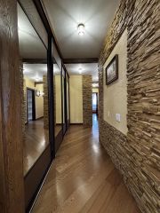 Ремонт в квартире выполнялся по индивидуальному дизайн-проекту, тщательно подобранной бригадой профессионалов, с использованием дорогостоящих импортных материалов. Напольное покрытие в квартире: паркетная доска. В санузлах итальянская плитка. В гостиной дорогостоящие декоративные элементы отделки.